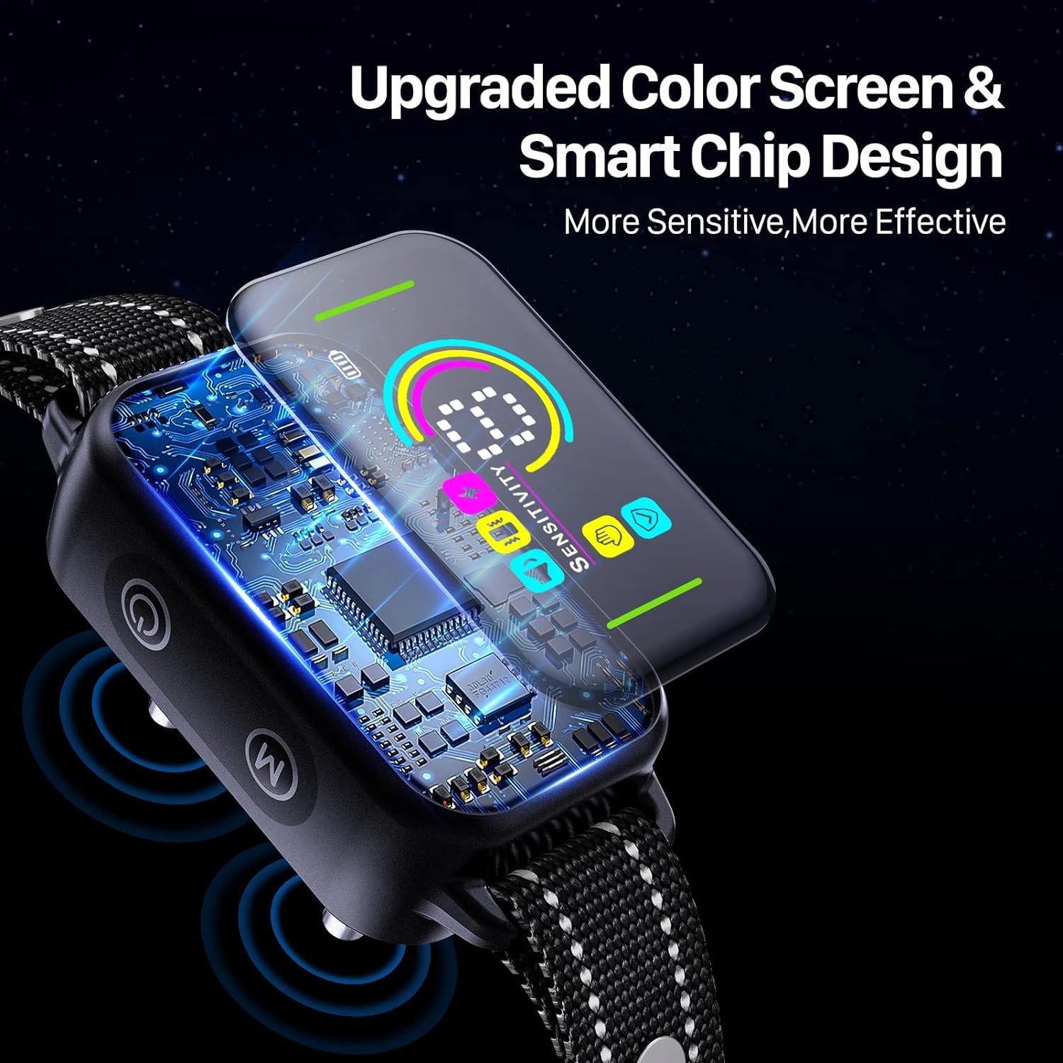 This collar adopts advanced smart dog bark recognition chip and motion detection technology. At 1-7 sensitivity, it is only activated when both motion and barking are detected. At 8 sensitivity, it is activated when the dog’s barking is detected. This technology safely and effectively filter other dog’s barking, preventing false triggering and protecting your dog from unnecessary punishment